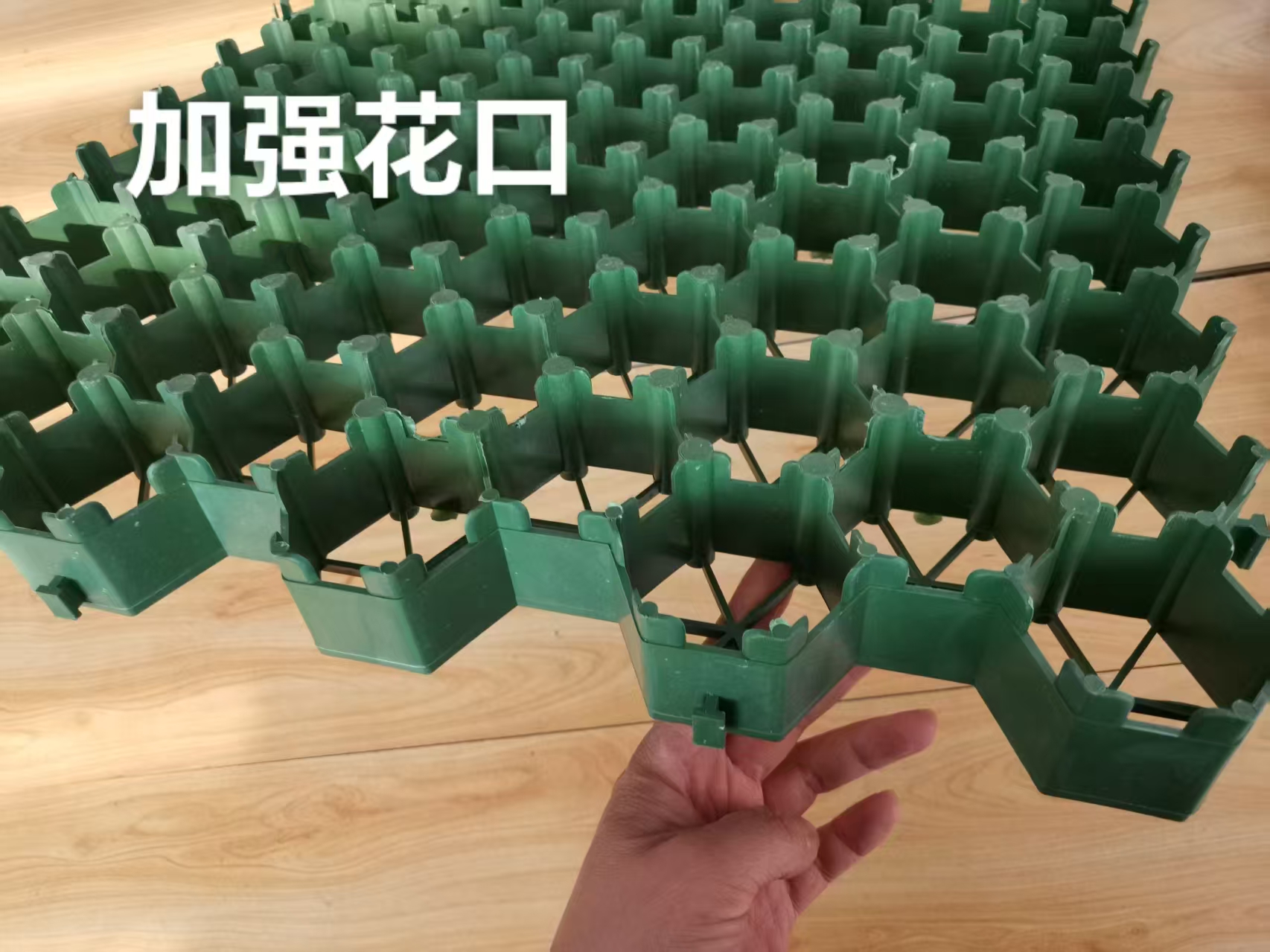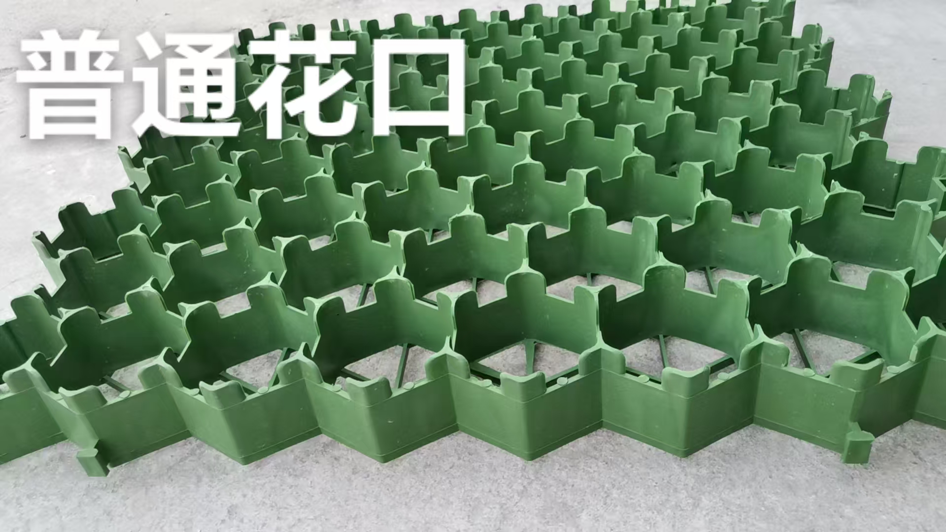 - 普通花口:采用基础网格结构,仅依靠植草格本身的板材厚度和花口造型维持稳定性,无额外强化部件。